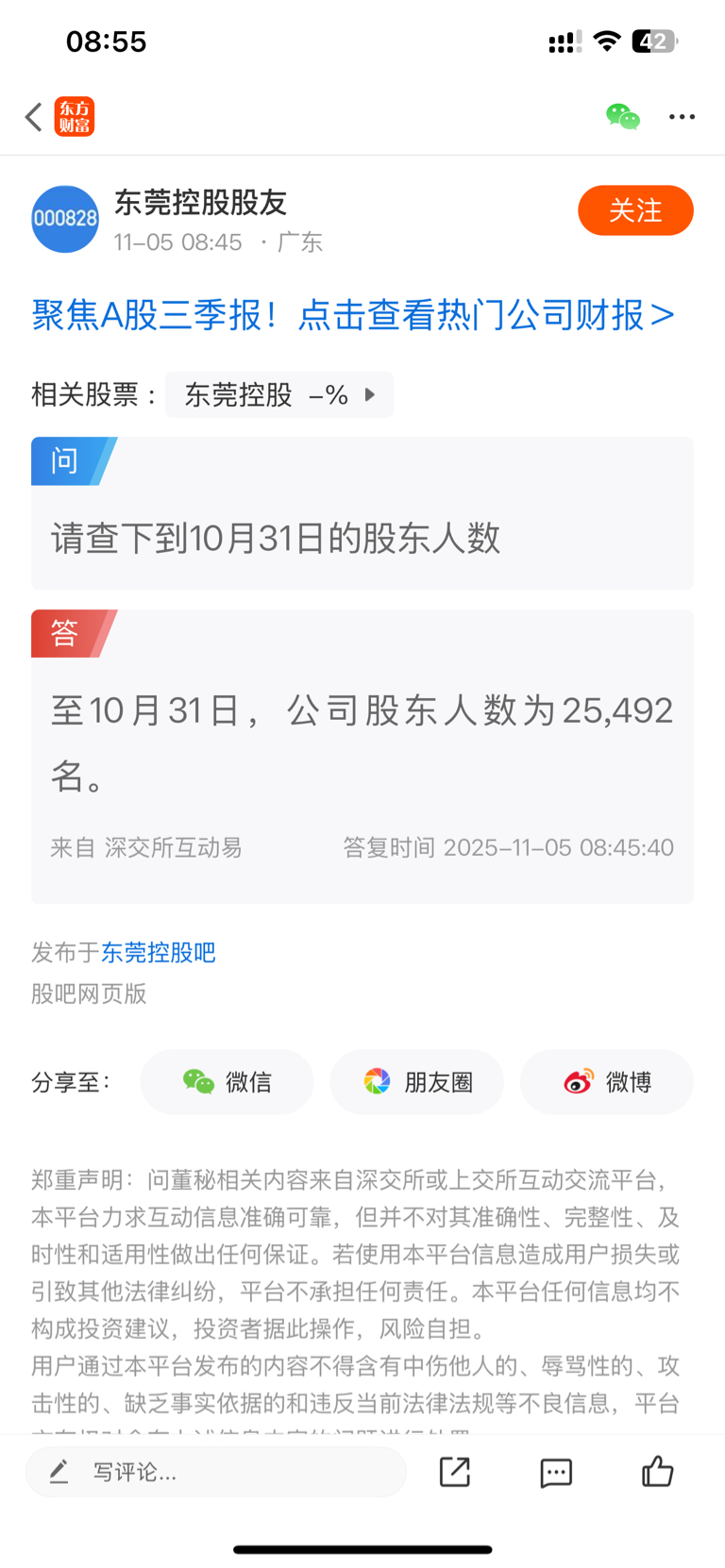 为董秘点赞,一大早就回应了股吧里散户投资者的诉求。