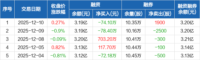 东莞控股:融资净偿还74.1万元,融资余额3.19亿元(12-10)