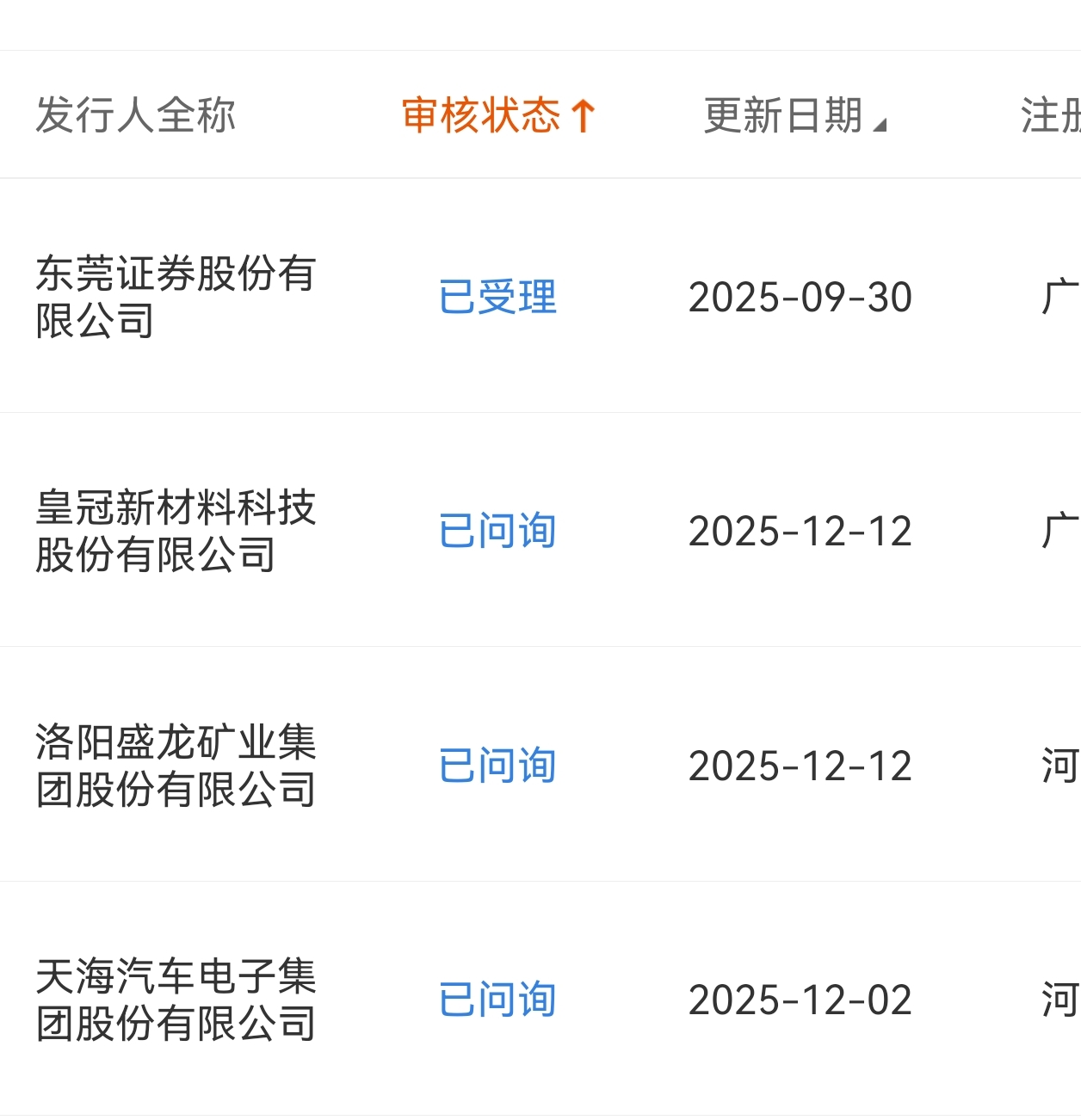 12月份连续问询了这么多家,就是没有东莞,估计金融行业不让再上市了!那个什么冬瓜