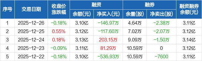 东莞控股:融资净偿还146.97万元,融资余额3.1亿元(12-26)