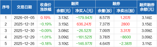 东莞控股:融资净偿还179.94万元,融资余额3.13亿元(01-05)