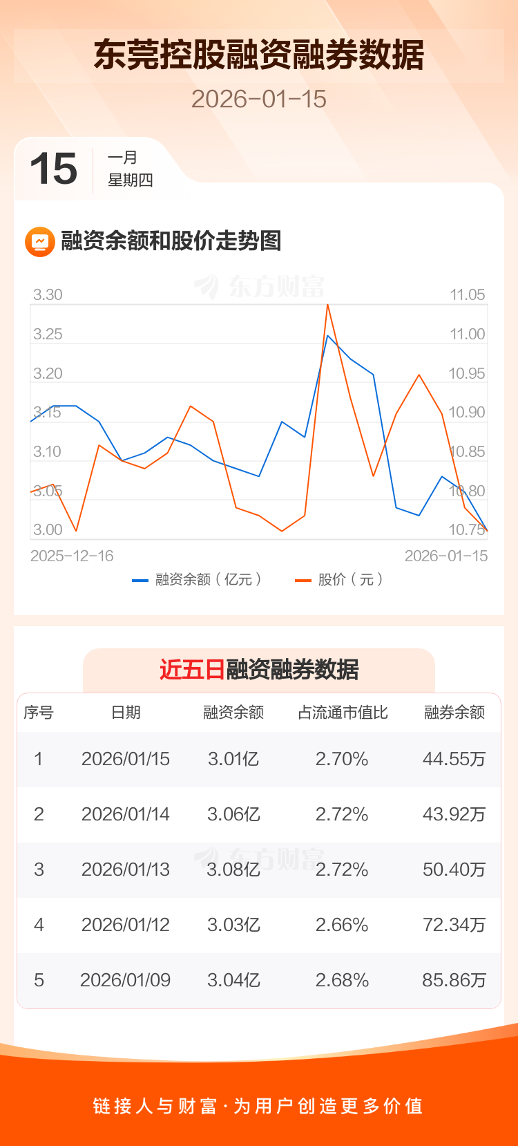 交易所最新数据显示,东莞控股于2026年1月15日获融资买入670.29万元,融资偿还1074.54万元,当日融资净偿还404.25万元。目前,该股融资余额3.01亿,占流通市值比例为2.70%。