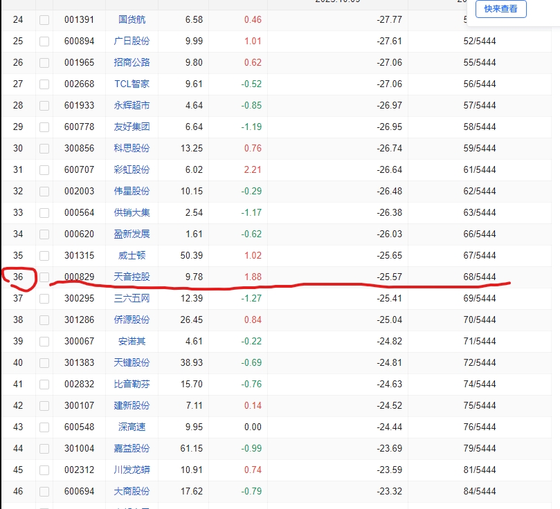 $天音控股(SZ000829)$ 行不行自己看。最新排名出来了。5444只股票。就算闭着眼睛买,也比天音强。