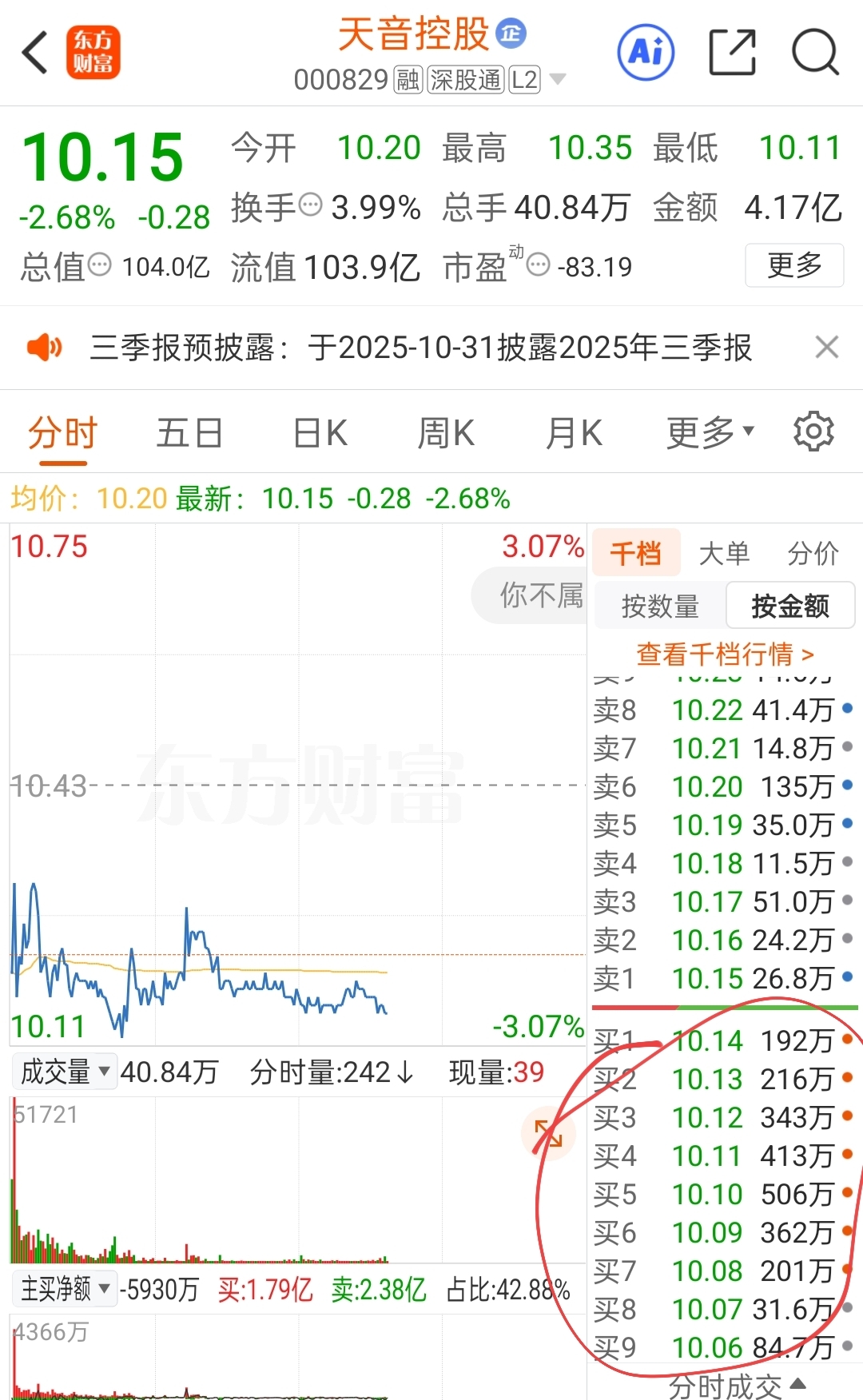 $天音控股(SZ000829)$ 这是什么意思,百万以上的买,十万以上的卖?