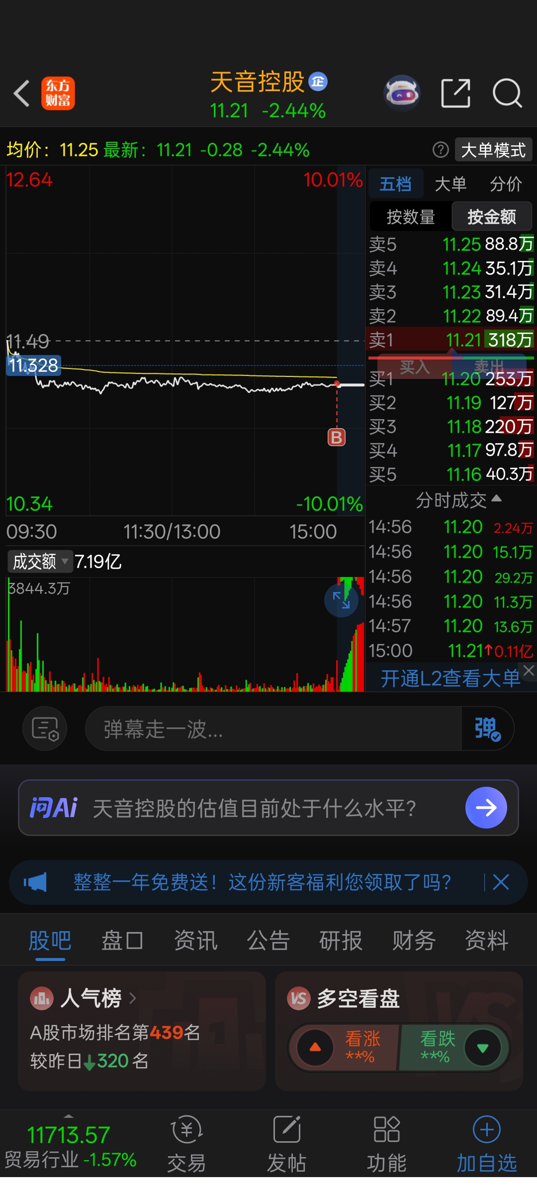 $天音控股(SZ000829)$ 尾盘加了点仓,感觉还行,明天有可能来个大阳,没有也无所谓最多跌五个点了不得了能卖出去就行,大不了割肉