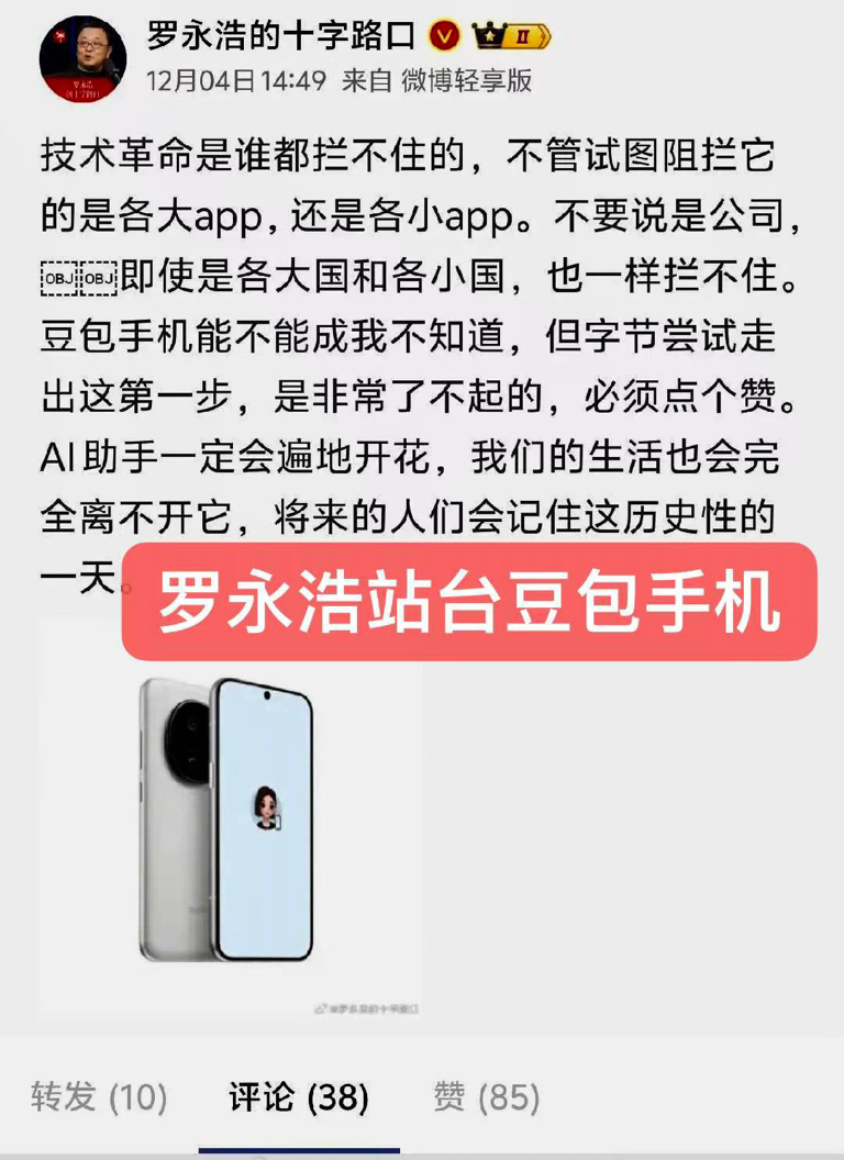 罗永浩站台豆包手机
