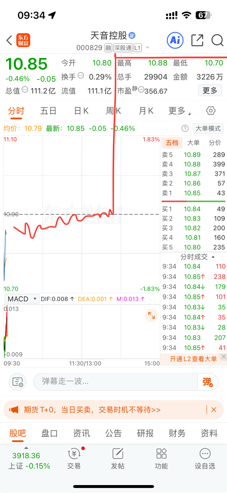 $天音控股(SZ000829)$ 高开要套人,低开要是好事…………
