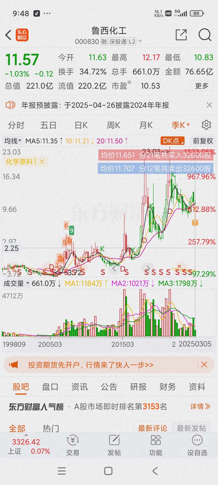 $鲁西化工(SZ000830)$ 我就是个人才!