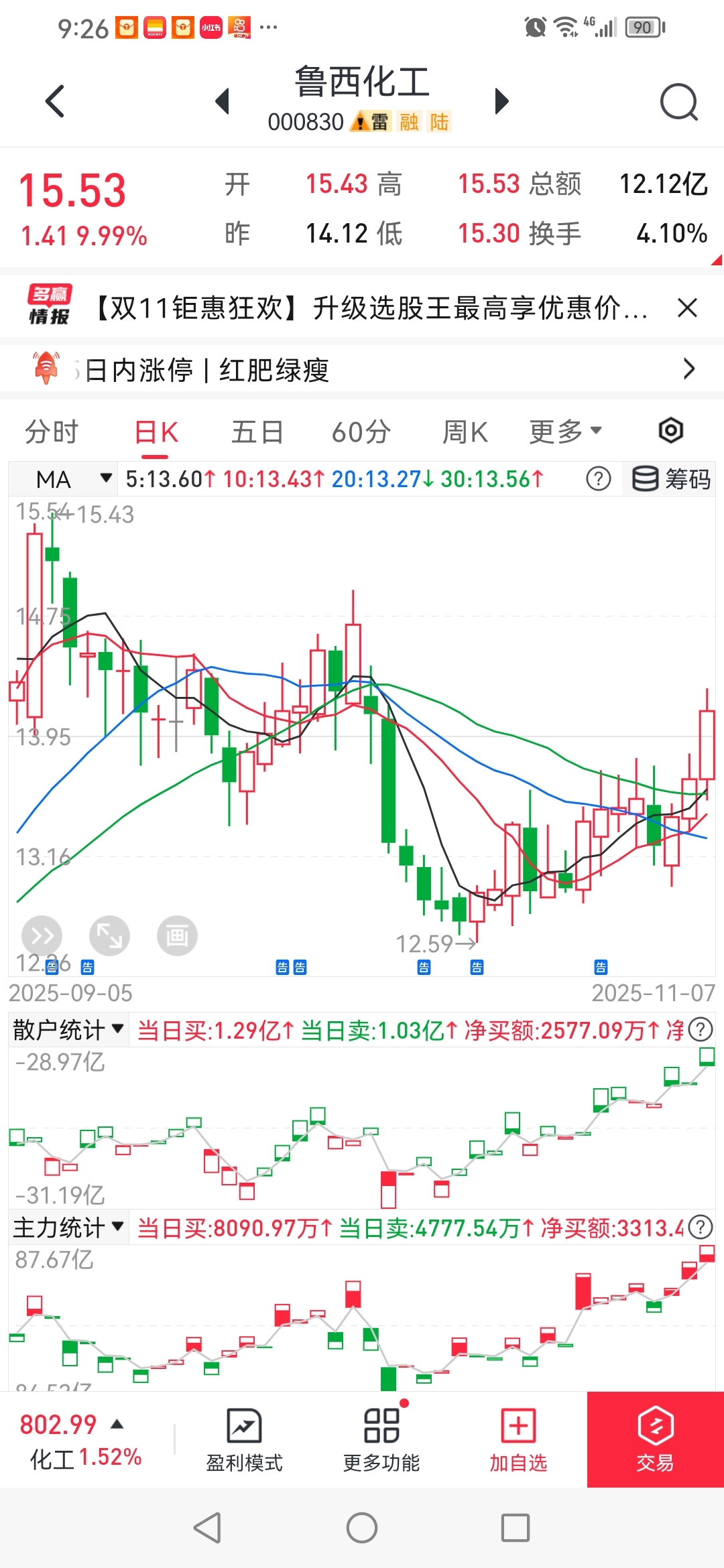 $鲁西化工(SZ000830)$  经传多赢手机版数据短线王123元年费