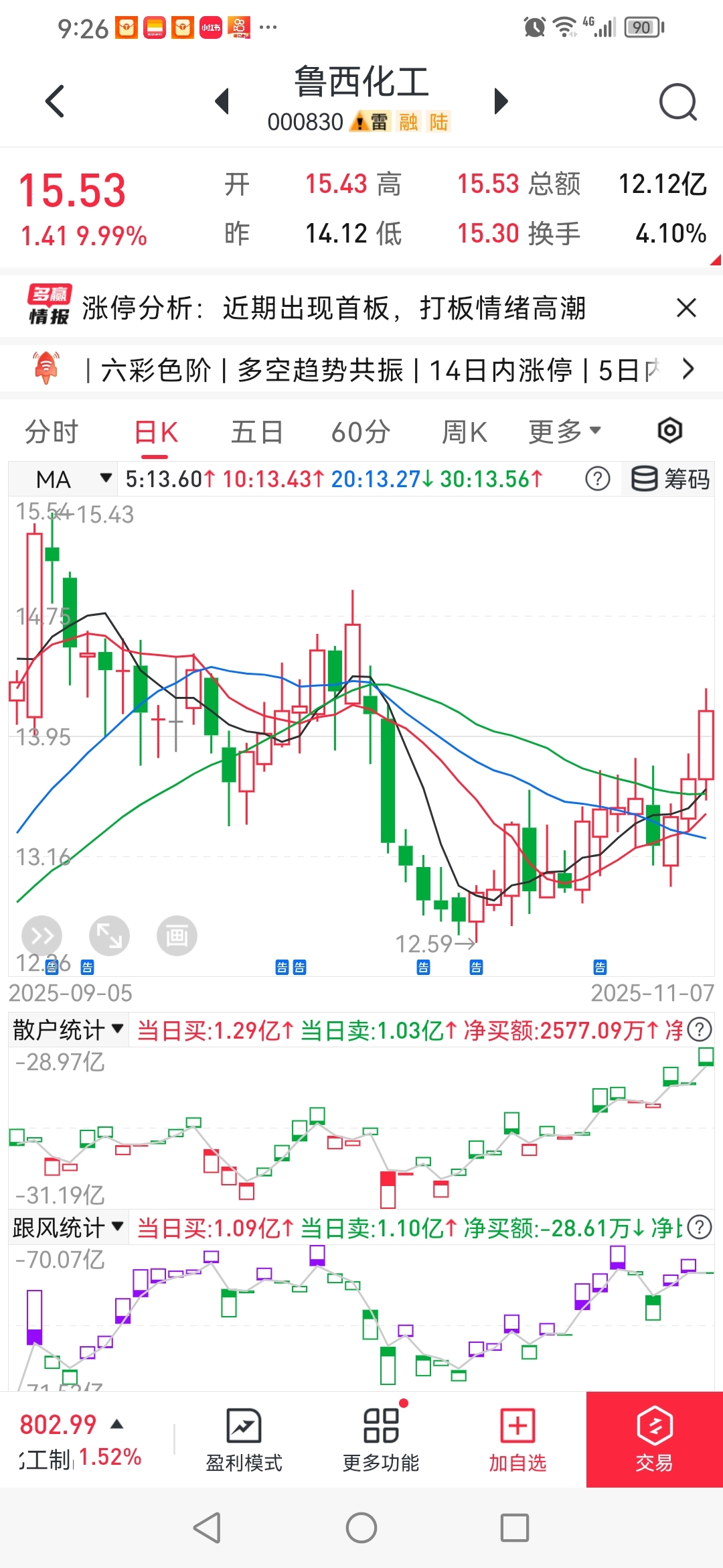 $鲁西化工(SZ000830)$ 经传多赢手机版数据短线王123元年费