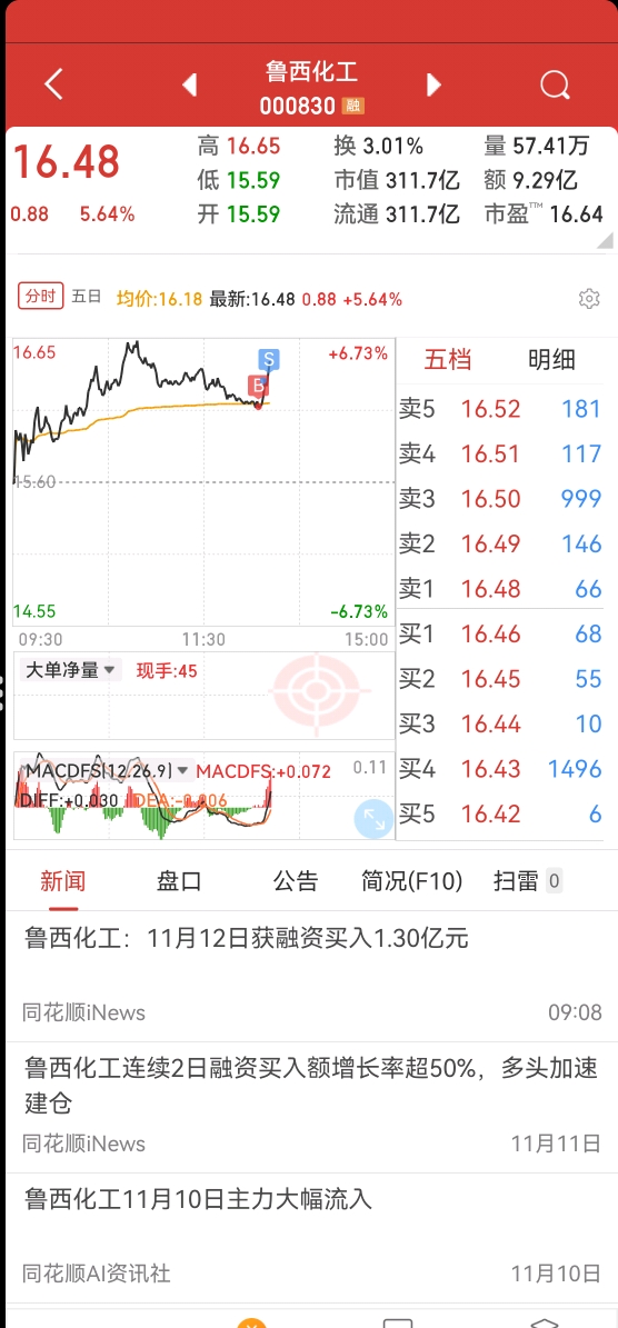 $鲁西化工(SZ000830)$ 这个主力每天都送钱给我们花!