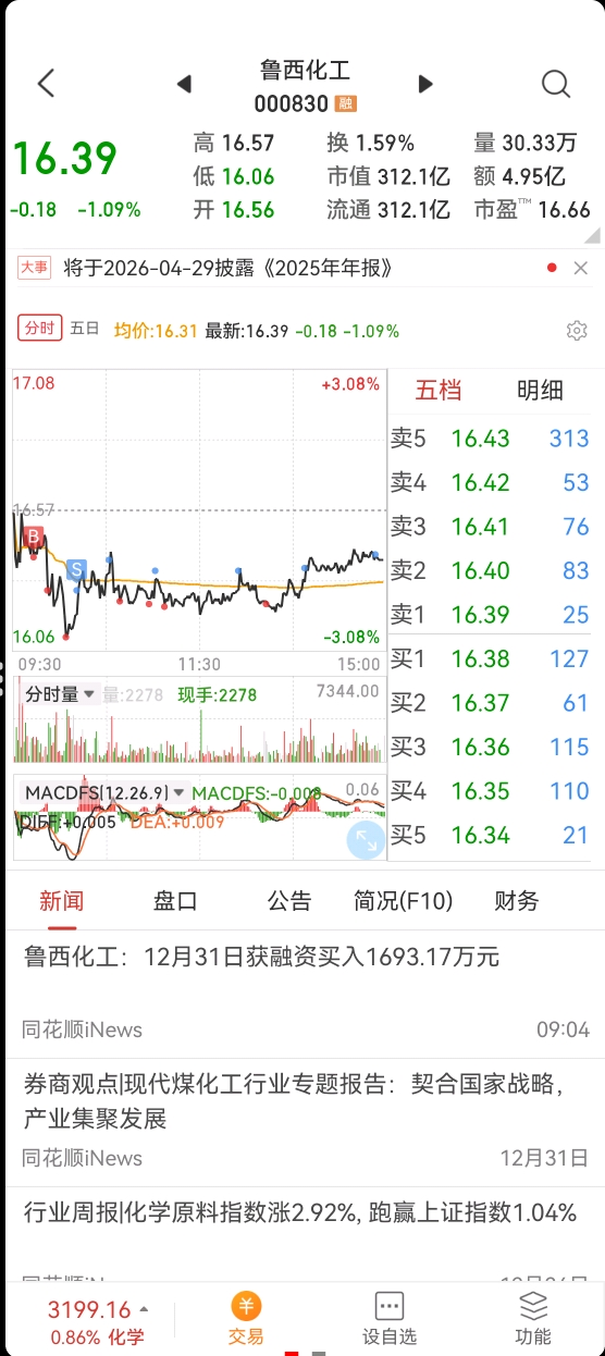$鲁西化工(SZ000830)$ 今天的操作是比较满意的…
