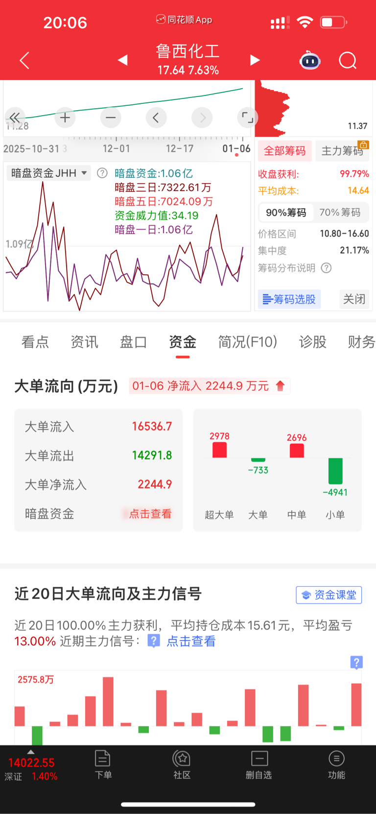 $鲁西化工(SZ000830)$ 这个暗盘资金准确吗
