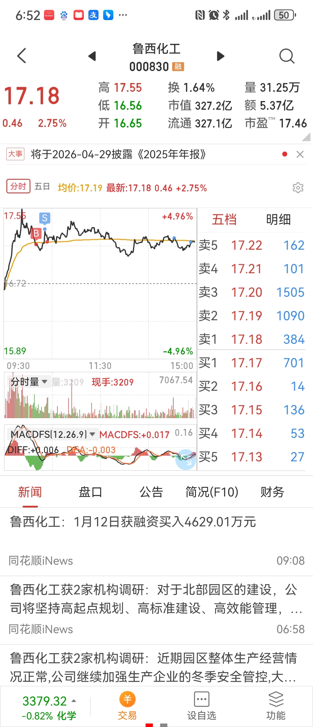 $鲁西化工(SZ000830)$ 今天第二笔买入在高点没出就被格局了!