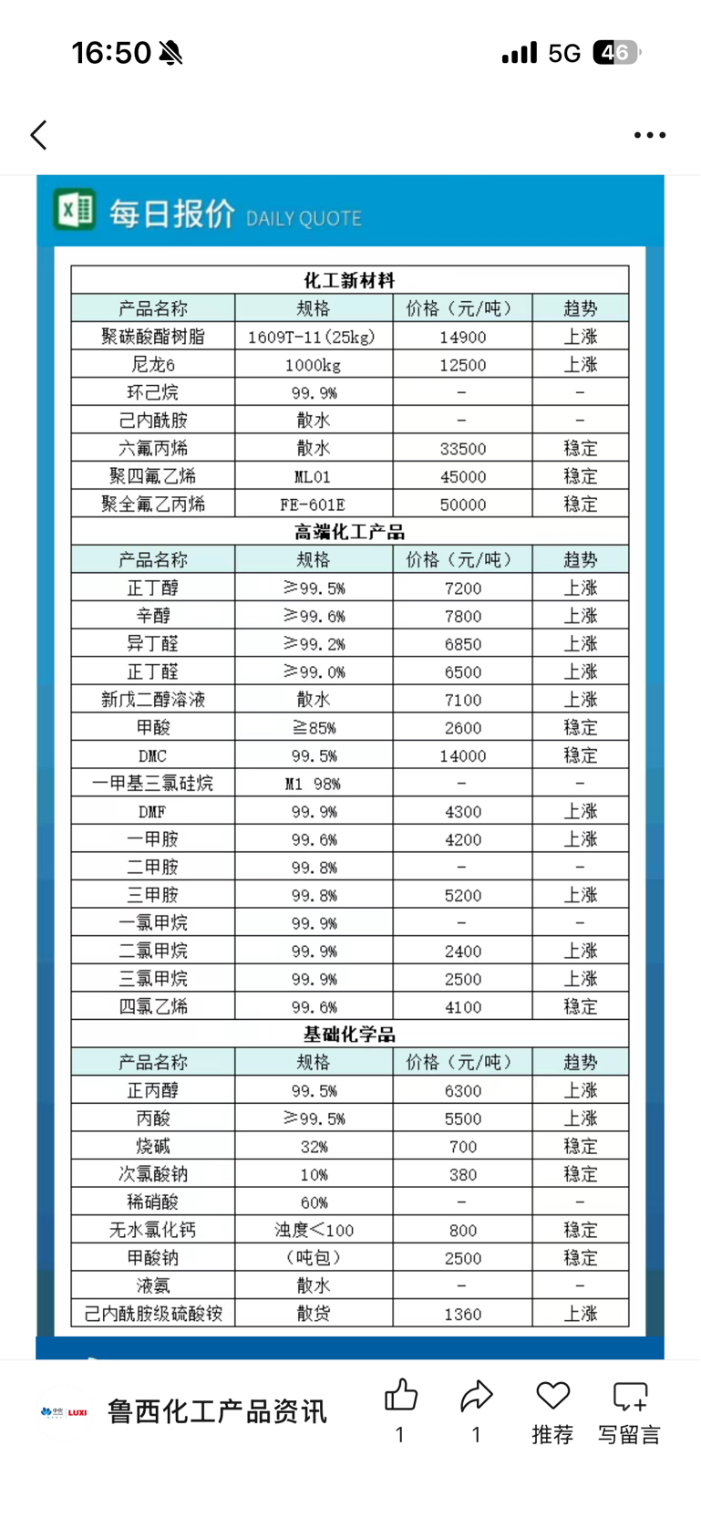 鲁西化工产品全线涨价,这一个月许多产品上涨20%以上。