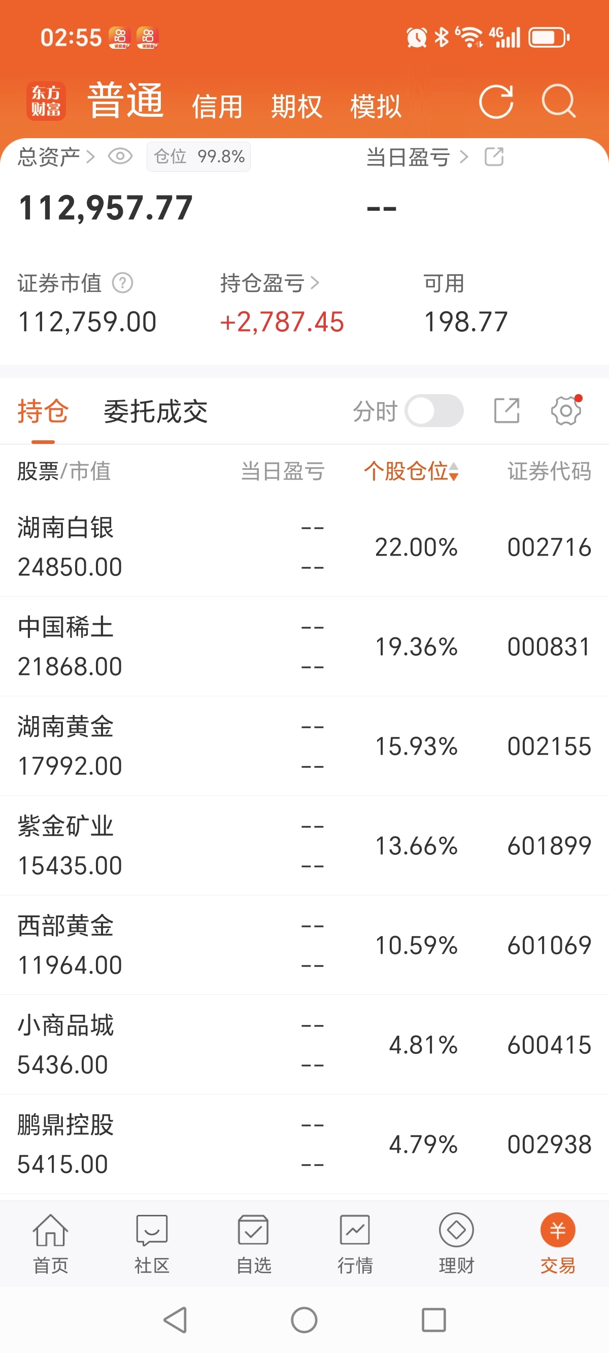 $中国稀土(SZ000831)$ 请问,这种仓位布局,周一能不能站着把肉吃了。