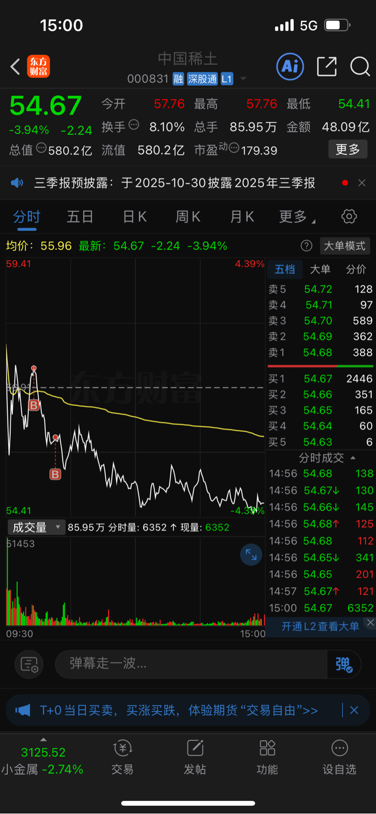 $中国稀土(SZ000831)$ 明天不涨停天理难容!