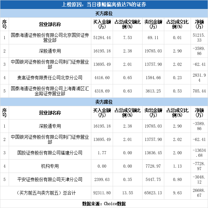 龙虎榜数据显示,今日卖四为机构席位,该席位净卖出7728.97万元,占该股今日总成交额的1.13%。