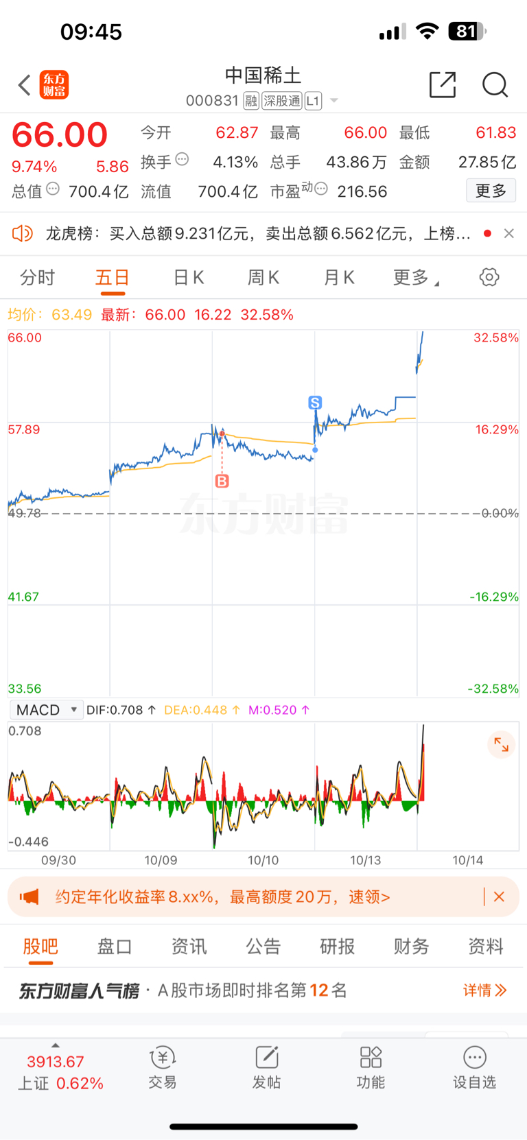 $中国稀土(SZ000831)$ 昨天挂单的我真的蠢本来满仓