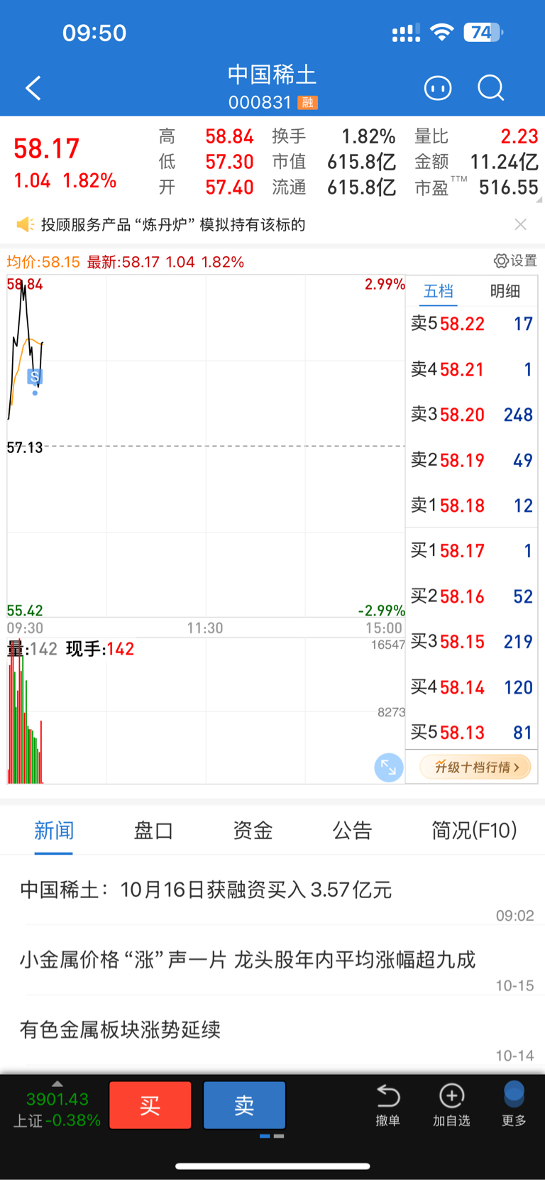 $中国稀土(SZ000831)$ 又妥妥卖在了最低点64元追高,连着两天做反T,今天直接卖在最低点。。。我是有毒吗?