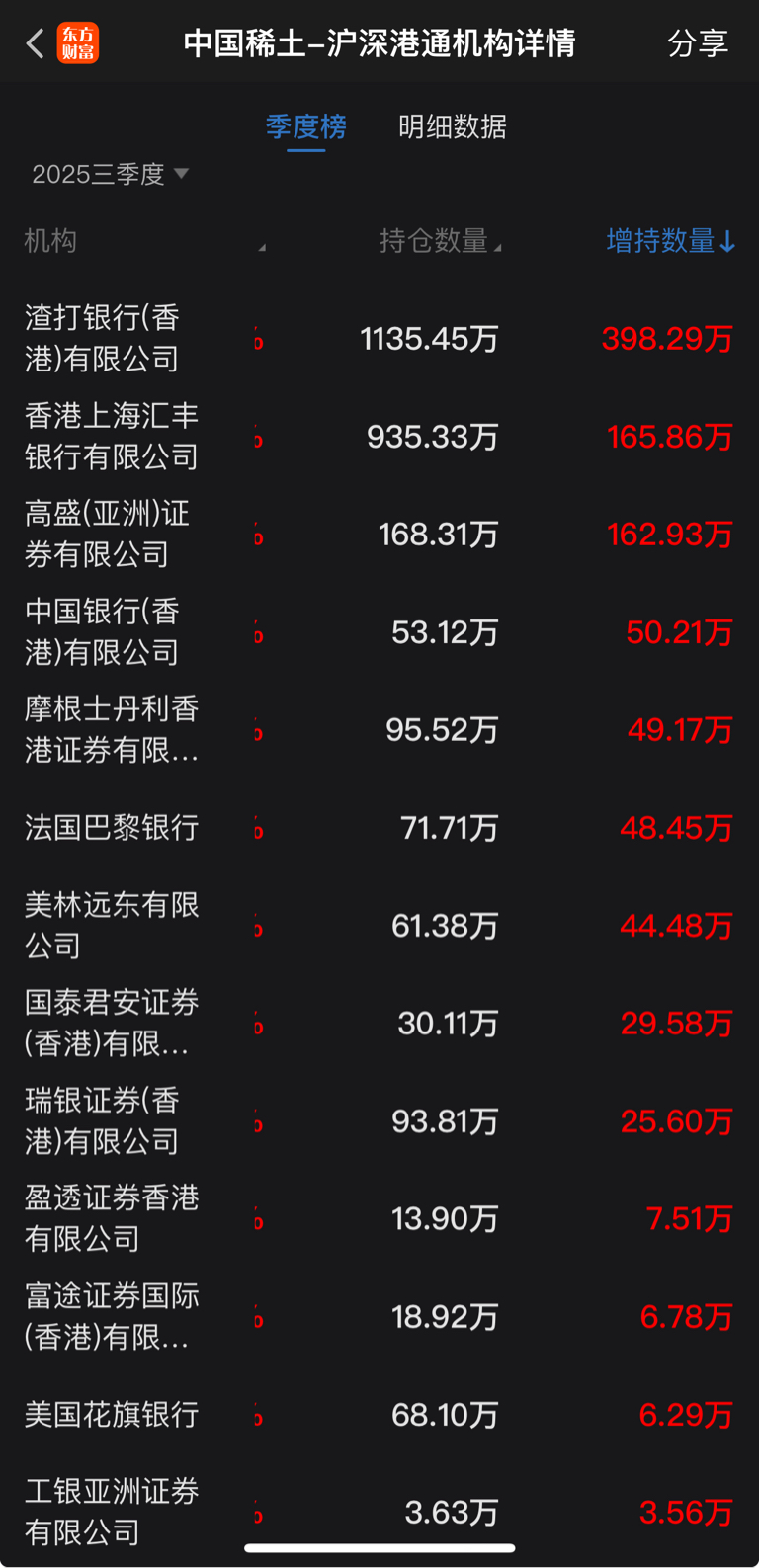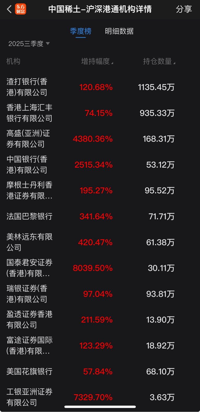 $中国稀土(SZ000831)$ 三季度北向资金嘎嘎加仓.海岛猴子到处唱空