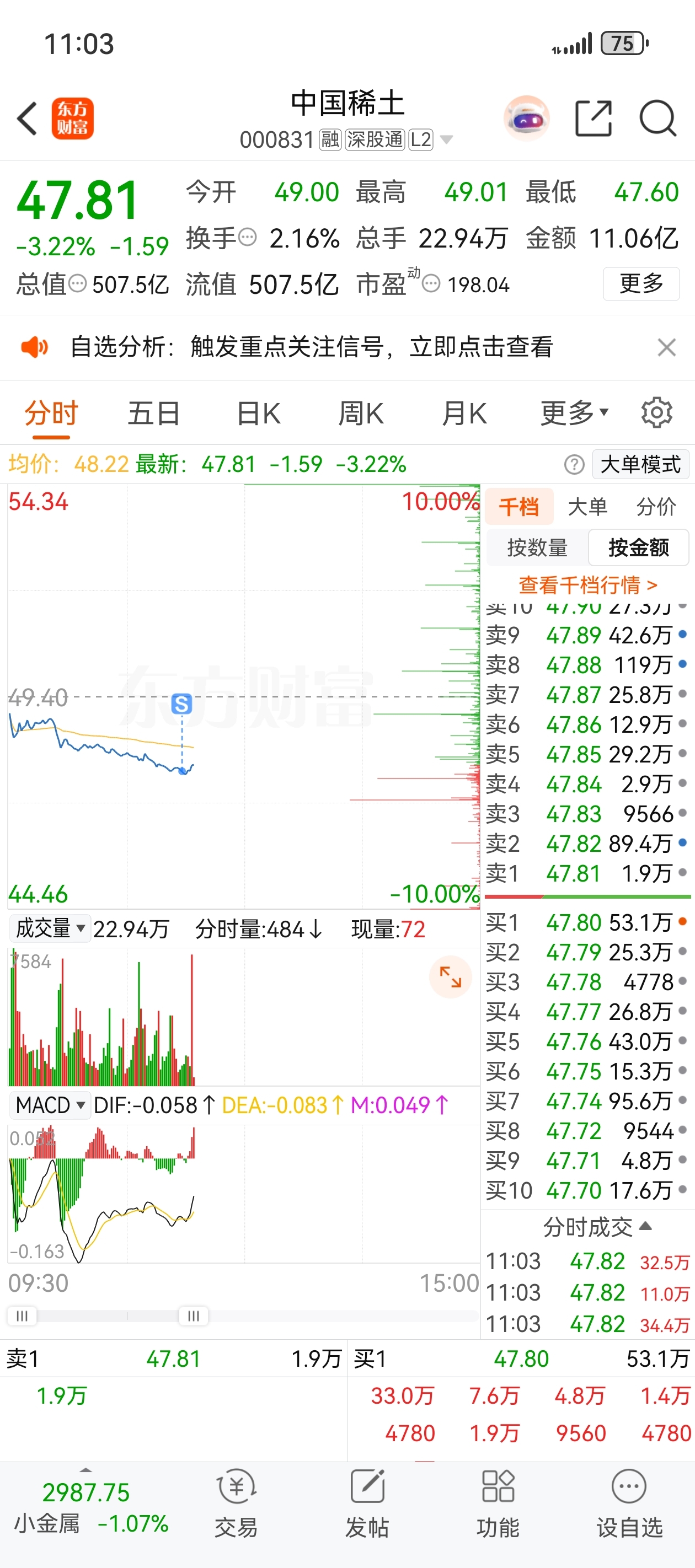 $中国稀土(SZ000831)$ 精准割肉
