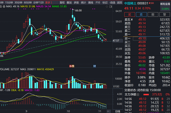稀土这段时间弱势调整,已打到颈线位置,均线空头排列,此处还有仓位的建议密切观察,如果下周跌破颈线,建议果断退出,防控风险,待走势向好后再找机会。没有仓位的不要急于入场,左侧交易风险较大。