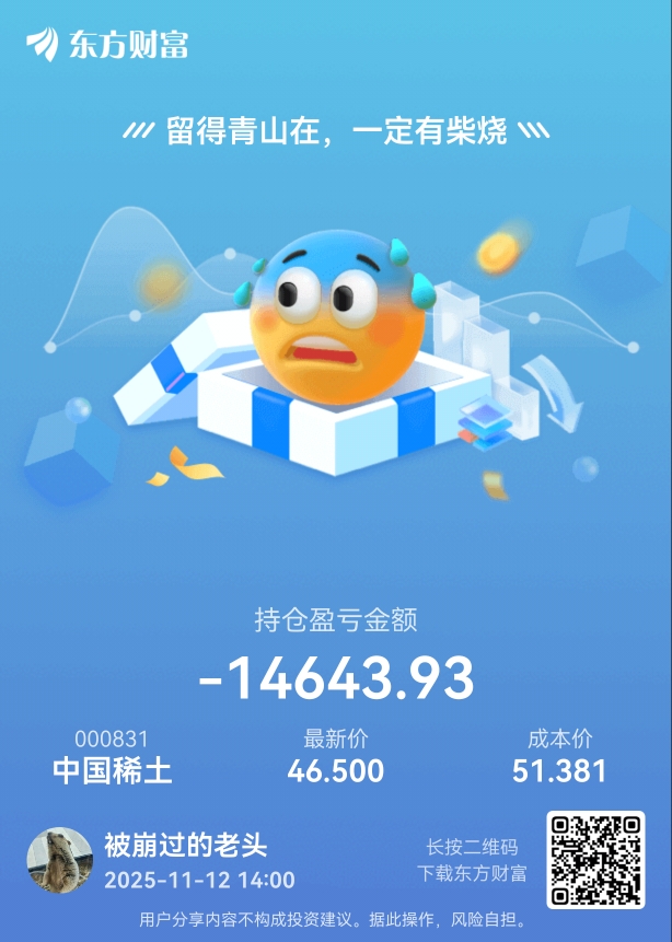 $中国稀土(SZ000831)$ 赔的裤衩都没了