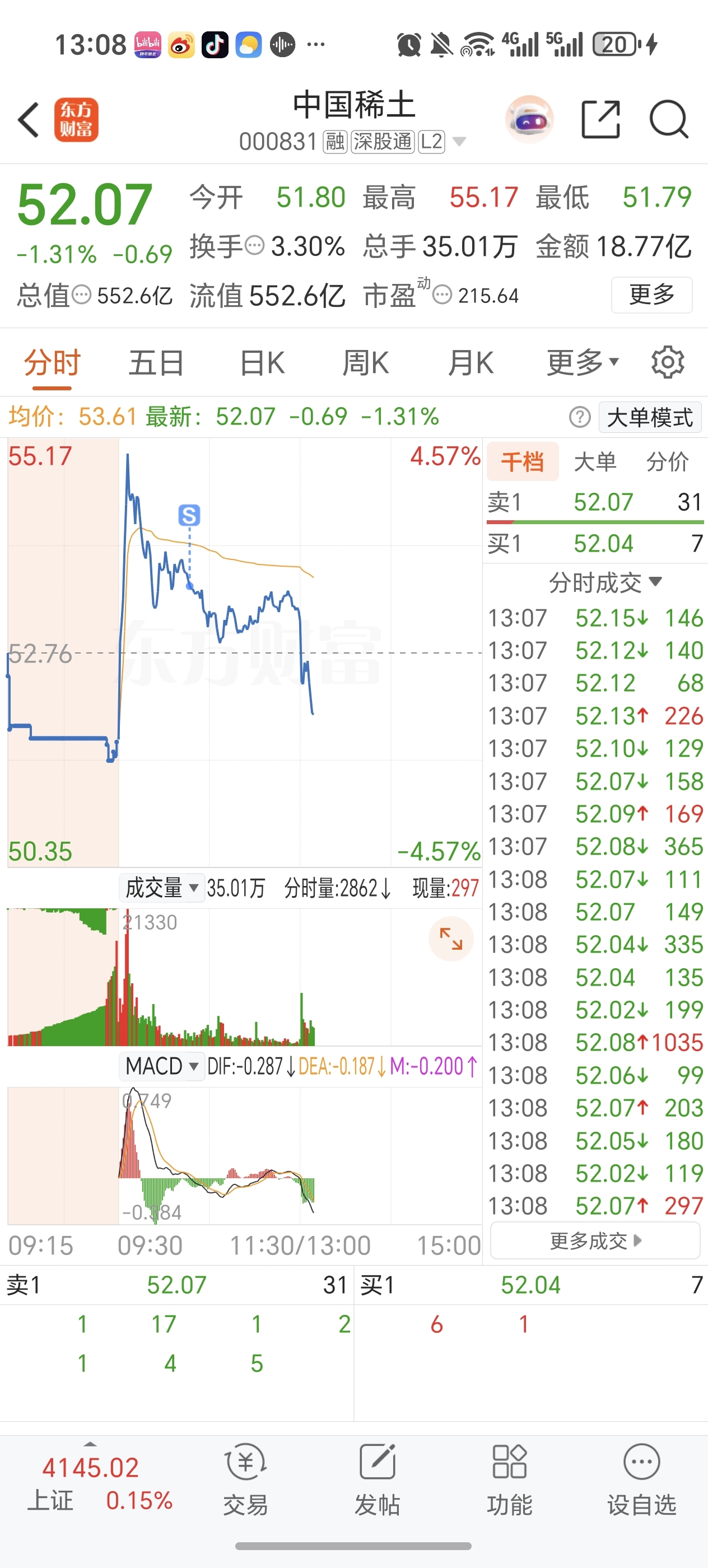 $中国稀土(SZ000831)$ 早上想高点跑挂单都来不及,也怪自己贪,你这个票呀