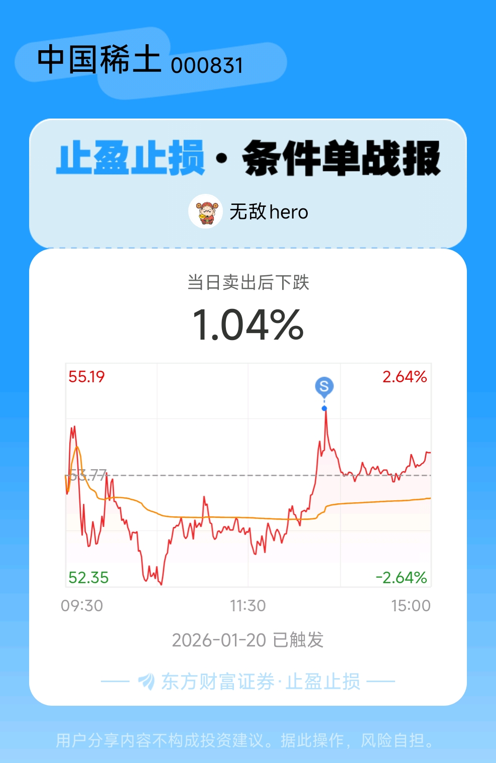 #条件单交流# #止盈止损晒单# 我方派出一个止盈止损条件单,立时就征服了$中国稀土(SZ000831)$