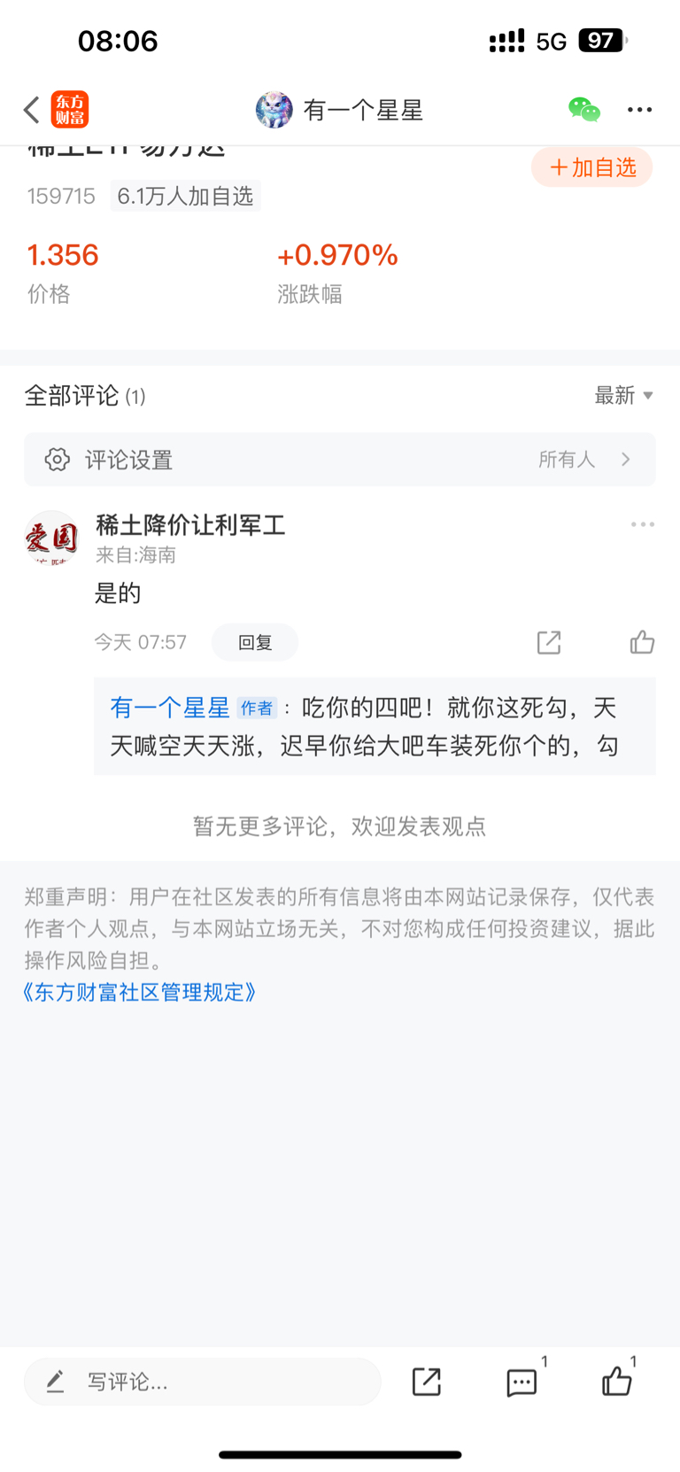 温馨提示: 1.根据《证券法》规定,禁止编造、传播虚假信息或者误导性信息,扰乱证券市场;2.用户在本社区发表的所有资料、言论等仅代表个人观点,与本网站立场无关,不对您构成任何投资建议。用户应基于自己的独立判断,自行决定证券投资并承担相应风险。《东方财富社区管理规定》