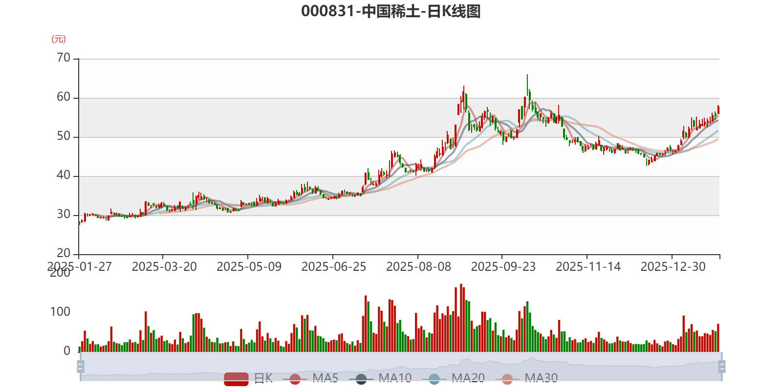 据公告,2025年是公司在高质量发展的征程上迈出坚实步伐的一年。上半年,稀土市场行情整体上涨,公司强化市场研判,调整营销策略,把握采销节奏,实现销售同比增长,有效提升经营创效水平。同时根据会计准则要求对部分计提的存货跌价准备予以冲回,对上半年利润产生一定正向影响。但下半年,受市场环境、供需调节等因素影响,部分中重稀土产品价格下行,特别是进入第四季度中重稀土产品价格下跌明显。根据会计准则要求,第四季度计提存货跌价准备金额环比增加,冲减了公司部分利润。