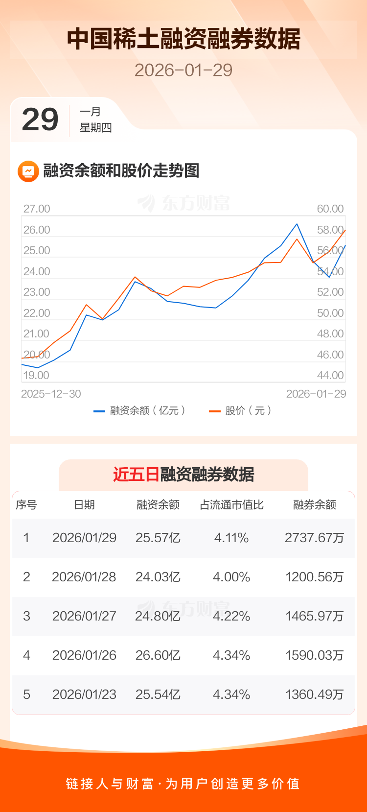交易所最新数据显示,中国稀土于2026年1月29日获融资买入6.41亿元,融资偿还4.86亿元,当日融资净买入1.54亿元。目前,该股融资余额25.57亿,占流通市值比例为4.11%。