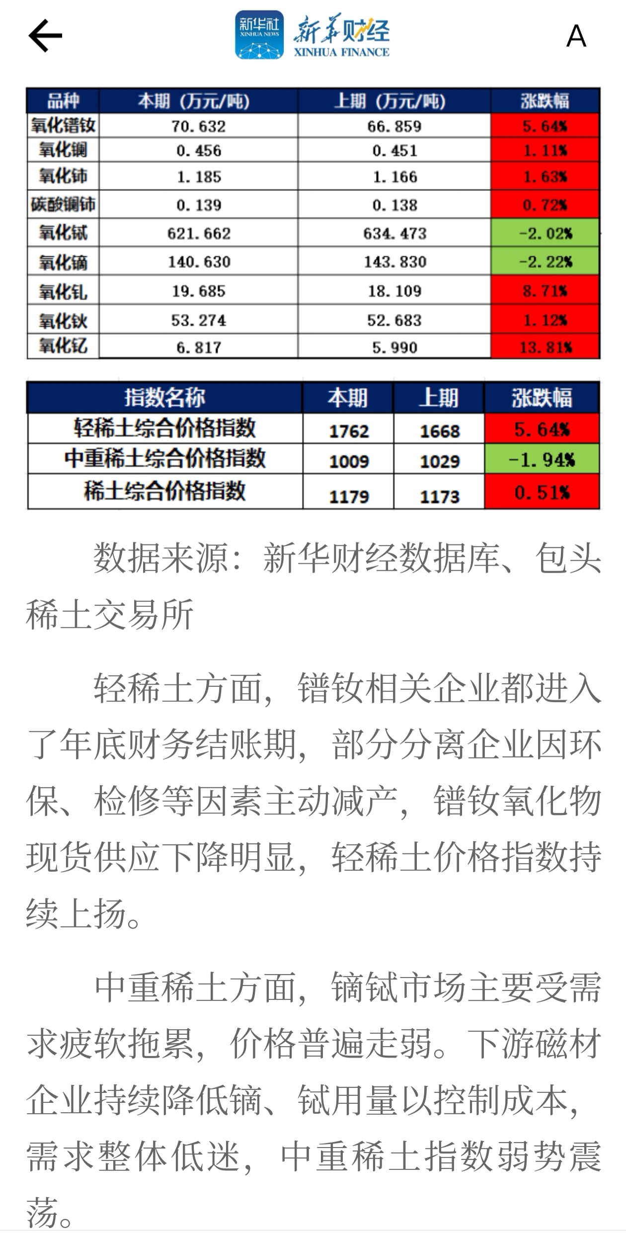 中国稀土的军用重稀土不出口,以前卖全球,现在只卖本国,库存都卖不出去,三季度库存比一季度多4个亿,现货价格当然稳定降价,所有都红,只有重稀土氧化铽、氧化镝降价。