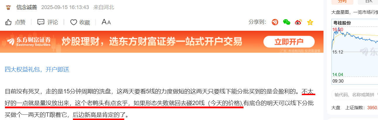 图片是我9.15号收盘后对后期走势的判断,复盘看股价走势基本符合