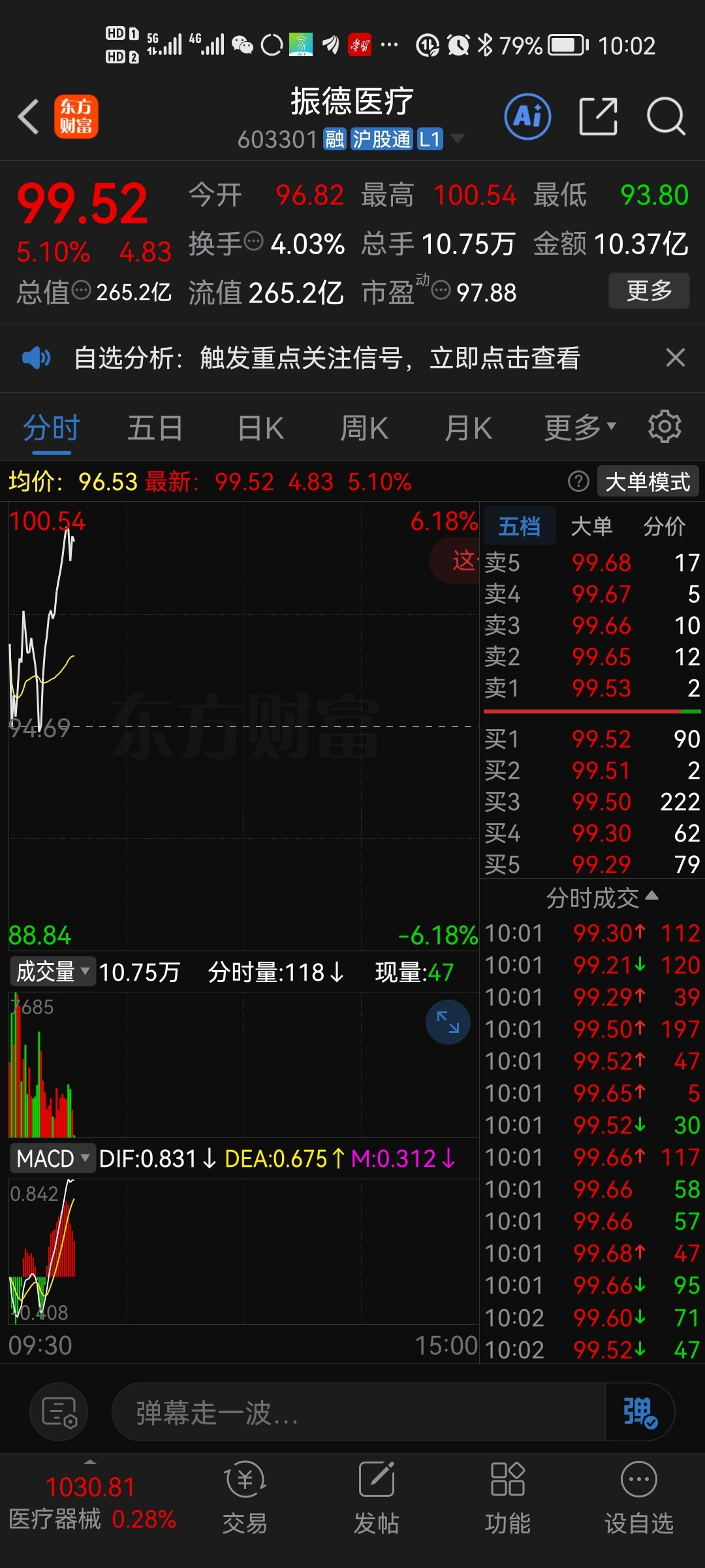 多学学振德医疗的主力吧,只喜欢红色。冲100啦。。这个主力顶多调整一天。。。。。