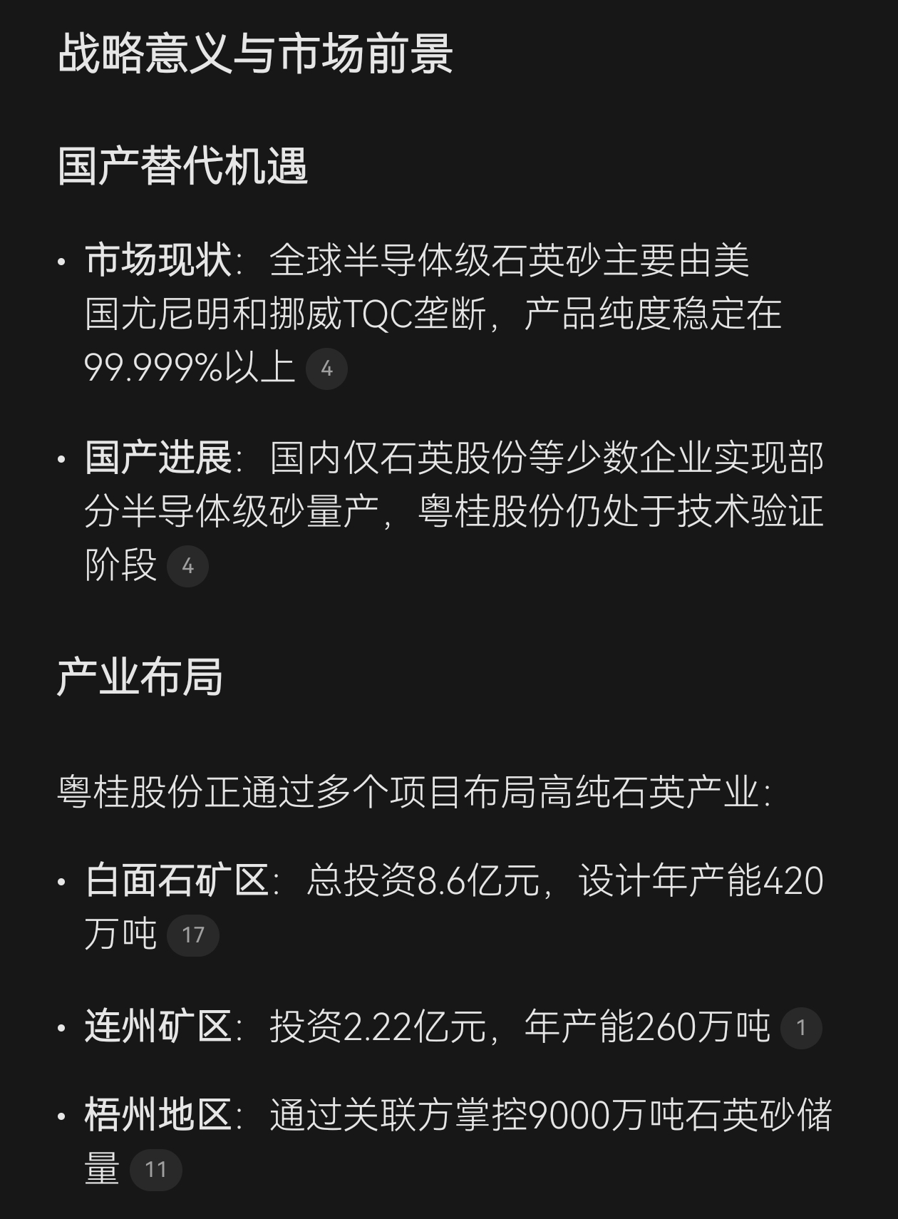 粤桂股份4N8级高纯石英石储量1200万吨,单价6万人民币,总值7200亿人民币