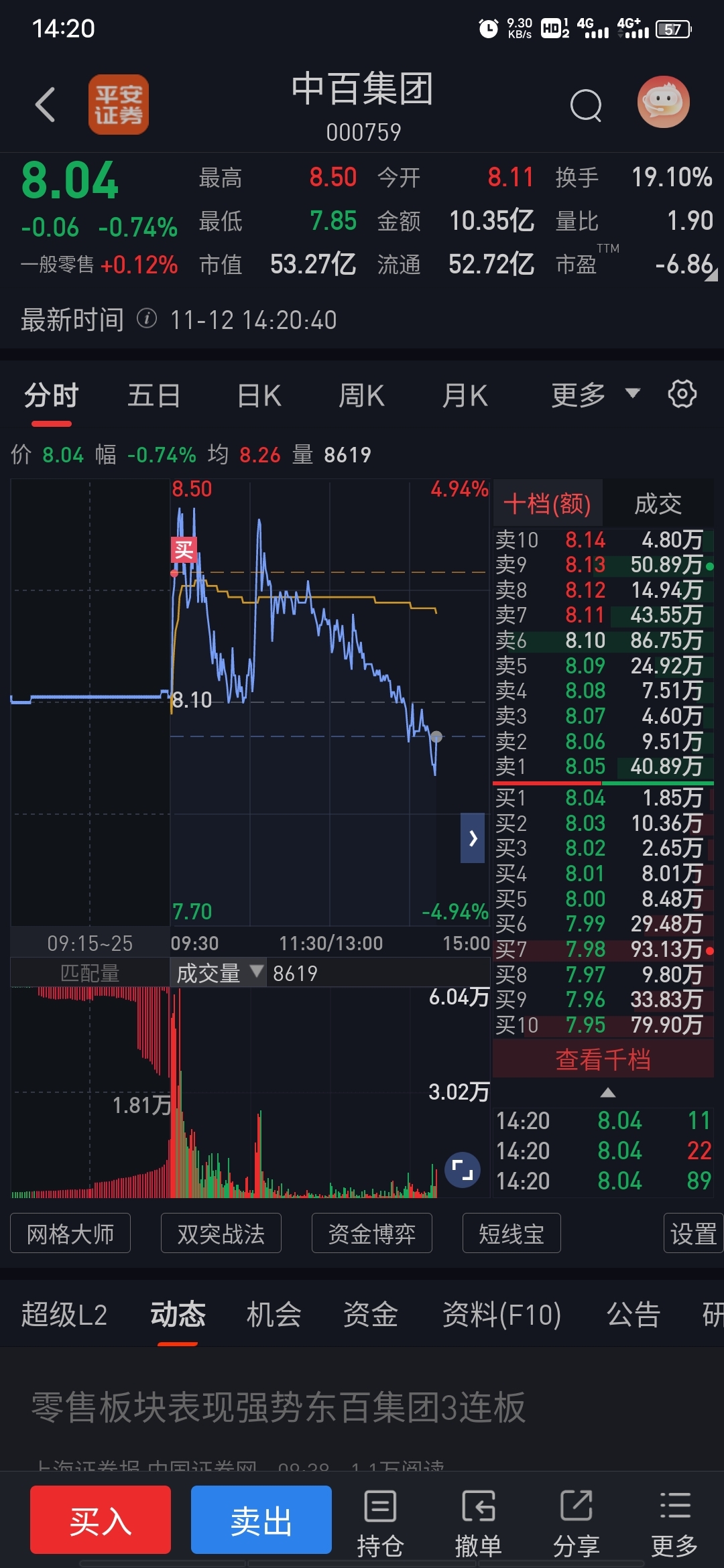 大数据确实可怕,买入的就跌,卖了的就涨,今天又卖飞了粤桂股份,新开仓中百,亚太药