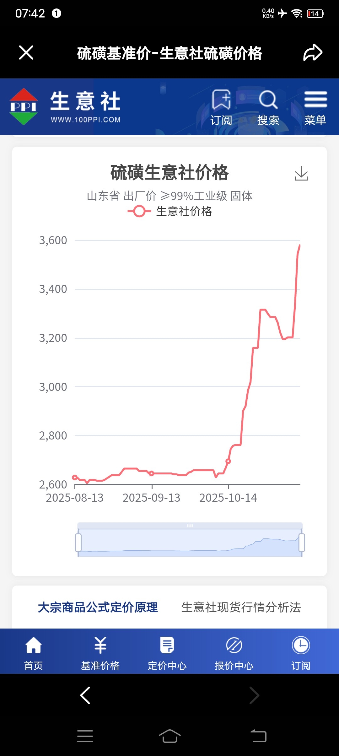$粤桂股份(SZ000833)$ 硫磺价格涨疯了,涨价最具有持续性了,想想当初中毅达