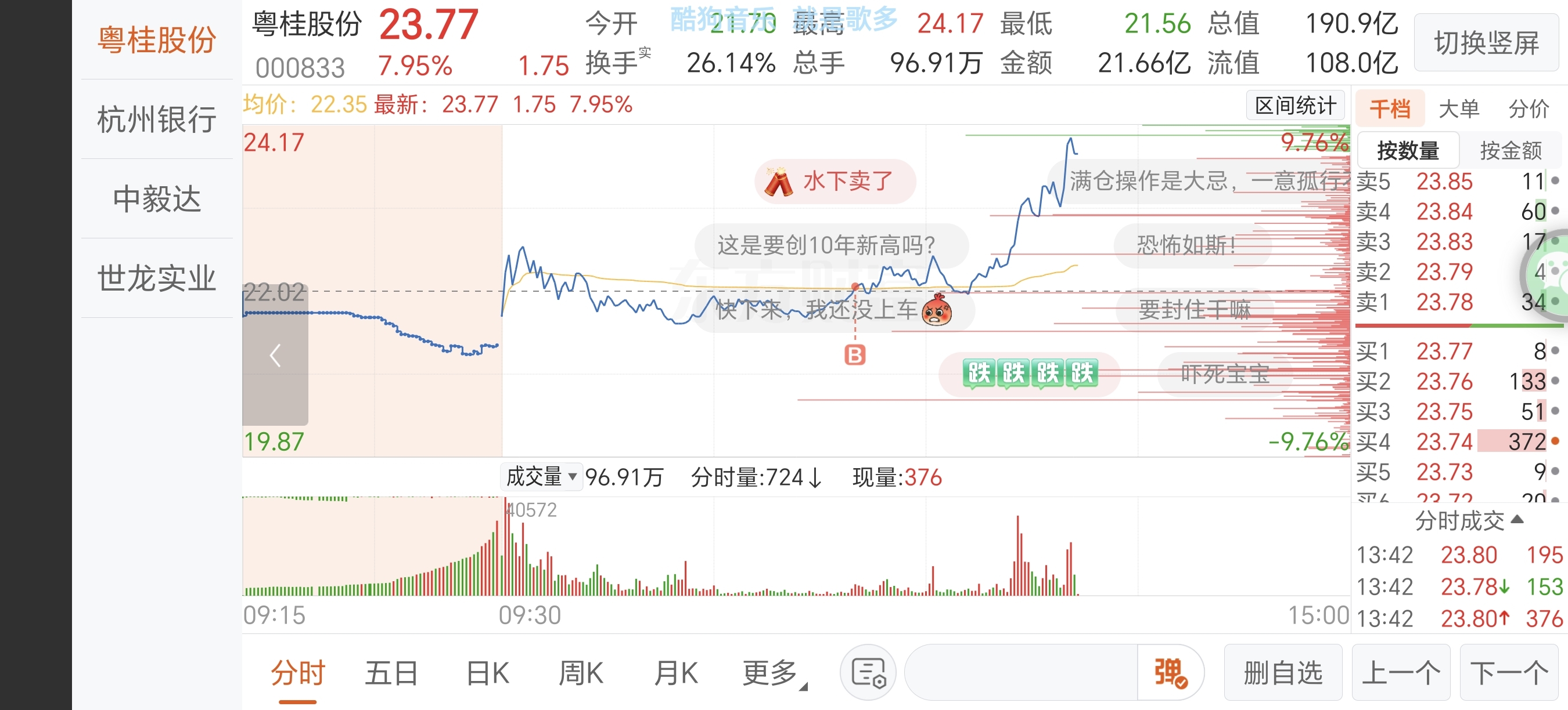 $粤桂股份(SZ000833)$ 早上看站上均线买进去还以为发套了(买进去就绿了