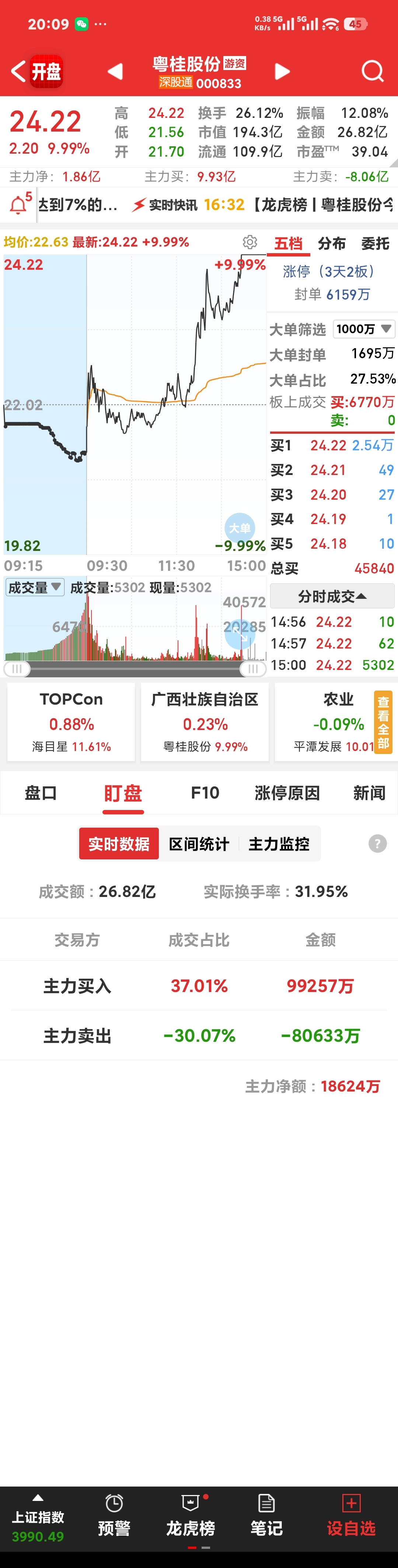 $粤桂股份(SZ000833)$ 大家都锁仓,周一连板
