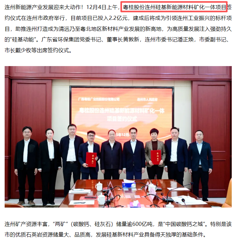 (12月4日)粤桂股份连州硅基新能源材料矿化一体项目签约