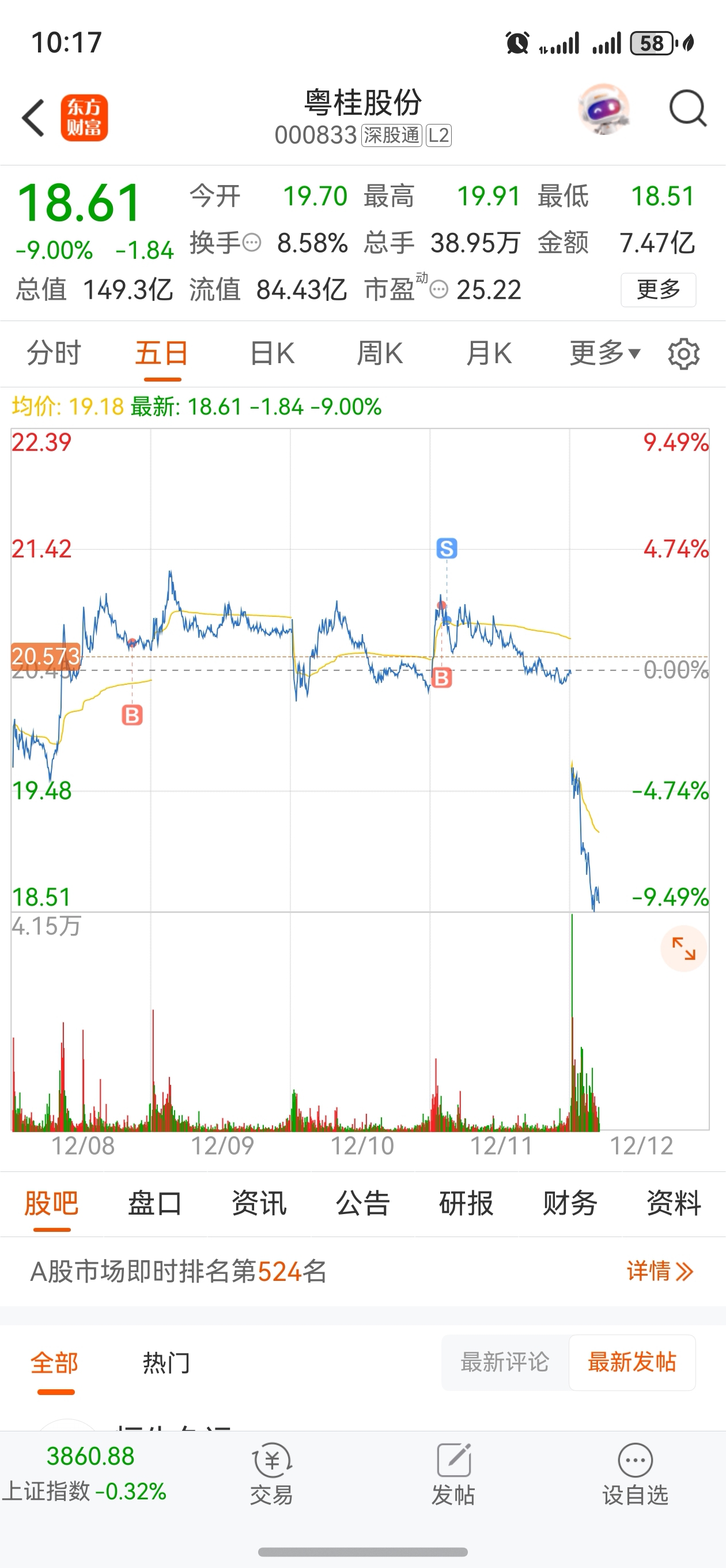 $粤桂股份(SZ000833)$ 哈哈,昨天定价卖出搞成定价买入,喜提一个跌停板。