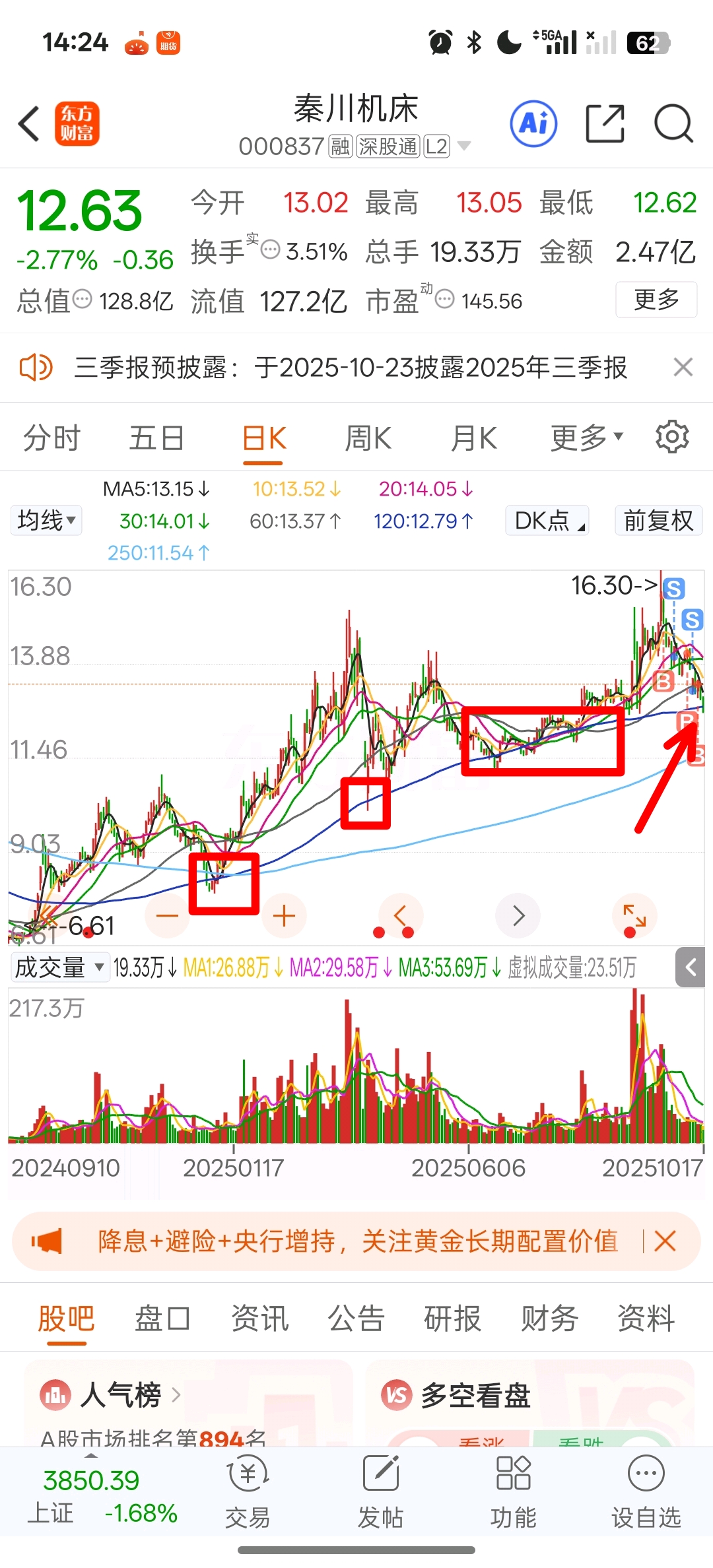 $秦川机床(SZ000837)$ 已经回踩120日线了。涨涨吧,我滴乖乖唉,亏死小爷我了,2.3月份 秦川比卧龙强,我却买滴是卧龙。