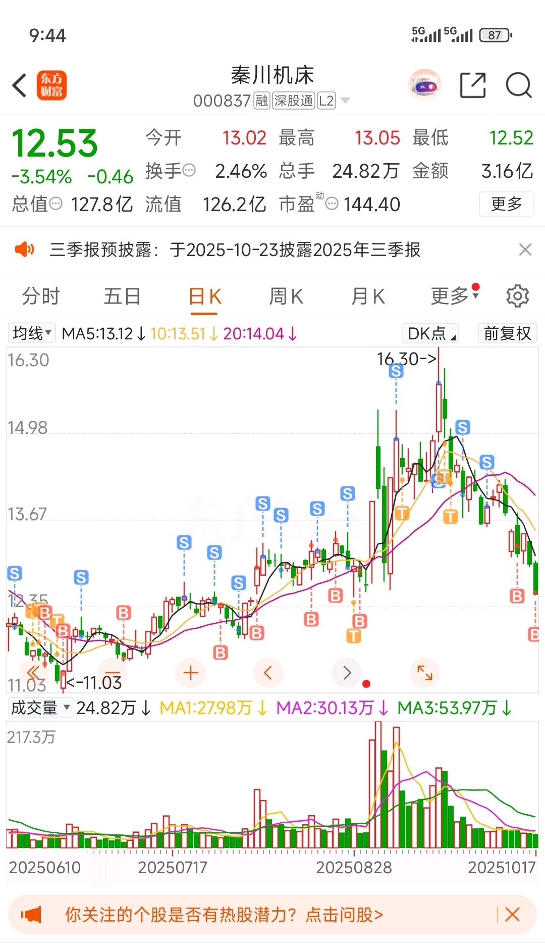 $秦川机床(SZ000837)$ 坚定持有,周一还会买