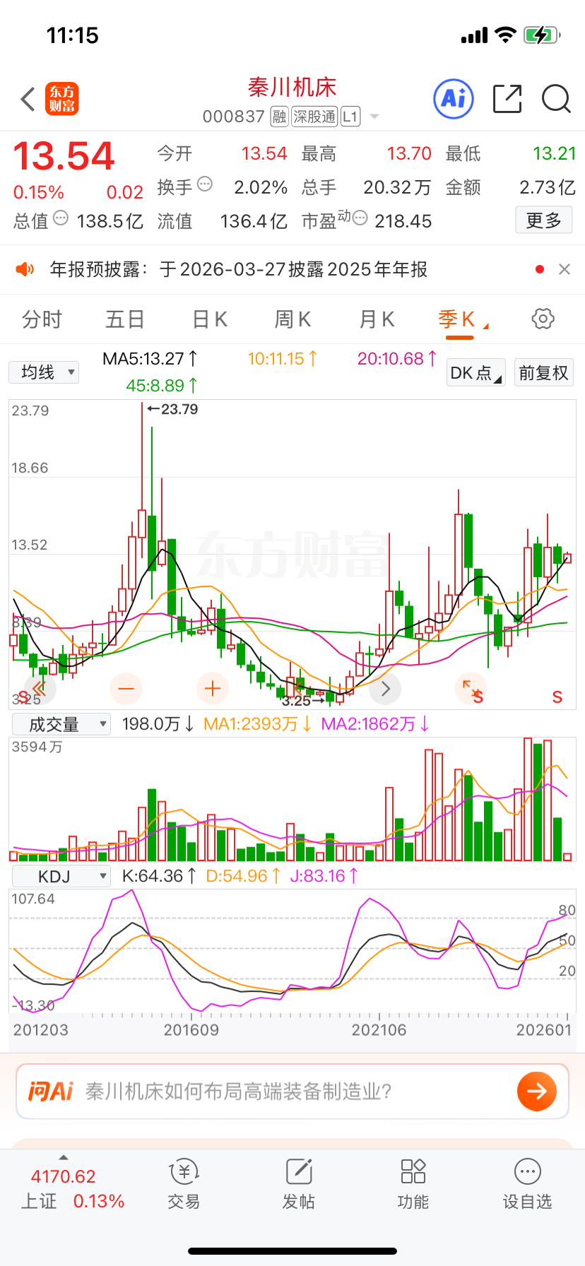 对比下季线走势,秦川就是白扯!!!!人家华东流通股少,容易拉升!而且趋势漂亮!!