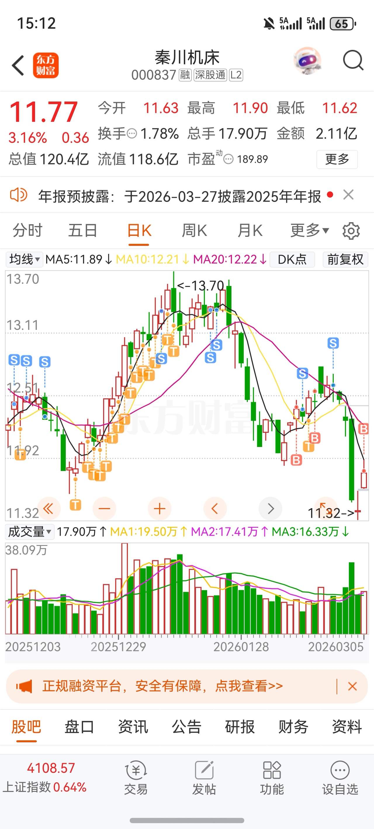 $秦川机床(SZ000837)$ 11.78进来了