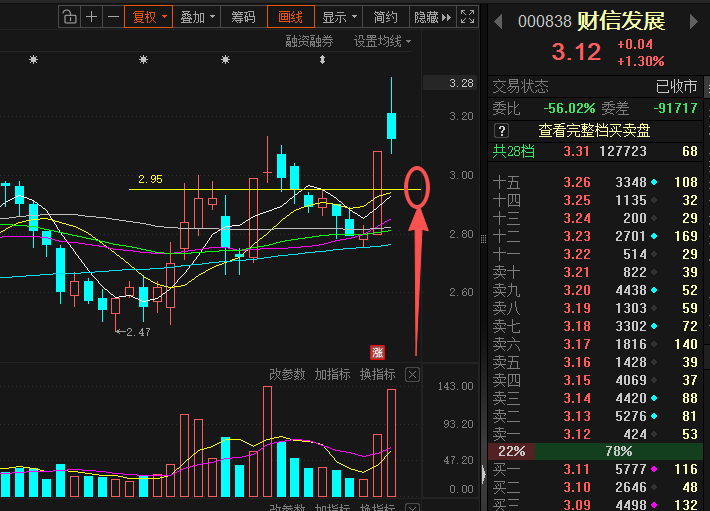 今天放量冲高回落,短线有主力高位派发筹码的动作,那么有股友问我这票怎样?那么我的思路就是,明日回踩到2.95左右时下方有承接或者明细缩量回踩或者竞价直接低开跌到位拉起,短线才可以参与。