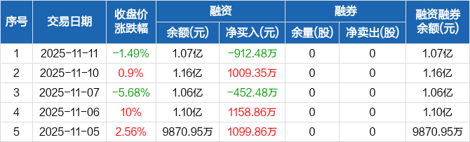 财信发展:融资净偿还912.48万元,融资余额1.07亿元(11-11)