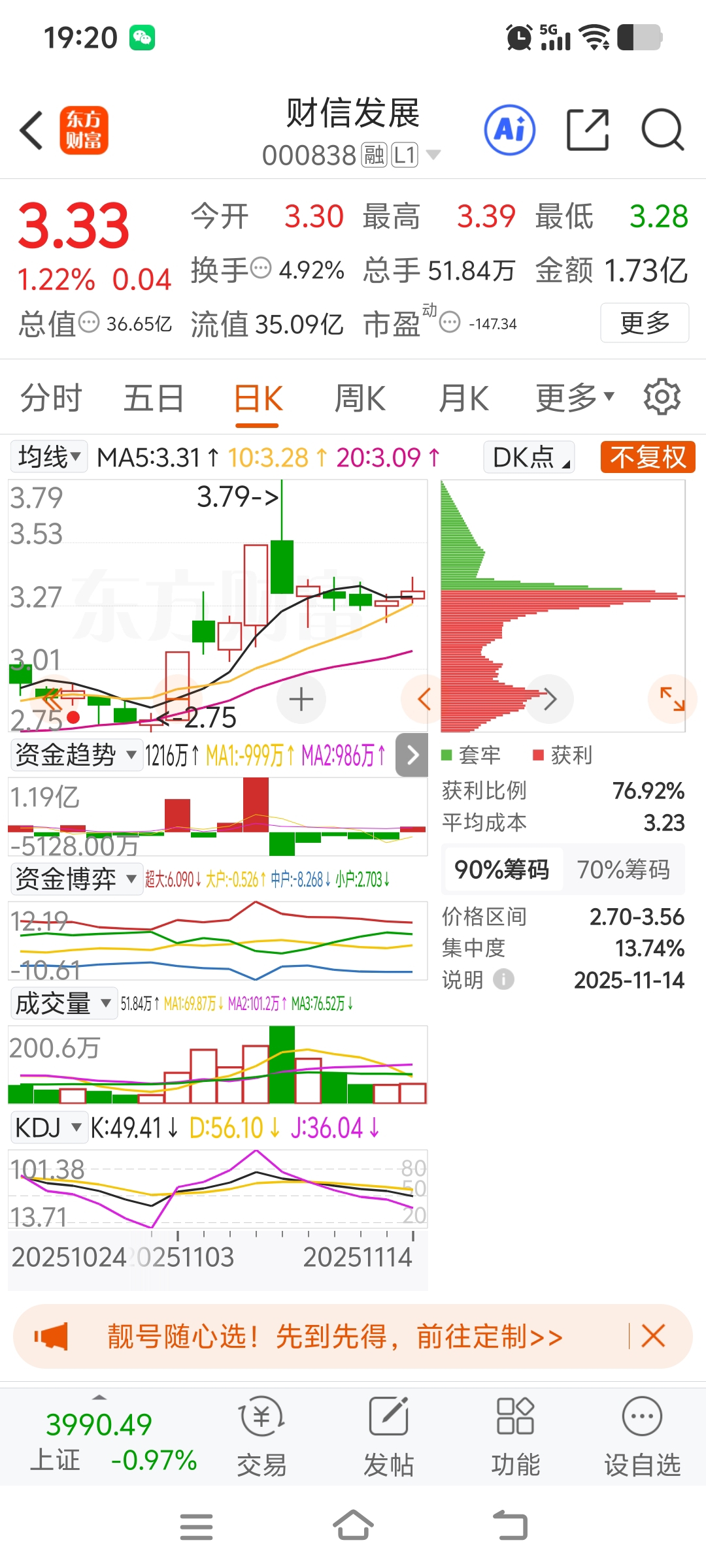 $财信发展(SZ000838)$ 三平量+揉搓线,调整基本结束,下周看表现吧!
